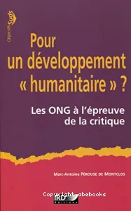Marc-Antoine Pérouse de Montclos, Author | Marseille : IRD éditions, Institut de recherche pour le développement | 2015Les ONG, pouvoir ou contrepouvoir ? Puissances occultes ou chantres de la transparence ? Mouvements sociaux ou institutions ? Entreprises ou associations à but non lucratif ? L'acronyme un peu désuet d'ONG cache en fait une myriade d'organisatio[...]![]()
